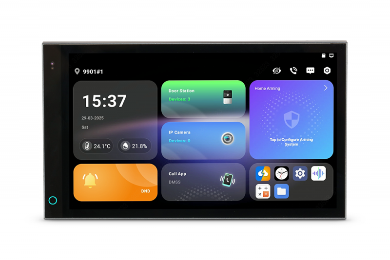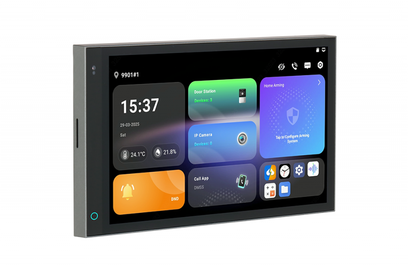 7-inch color touchscreen display (1024 × 600) + Android 14 + Wi-Fi + UTP and 4-wire connection + doorbell + micro SD card support + alarm function