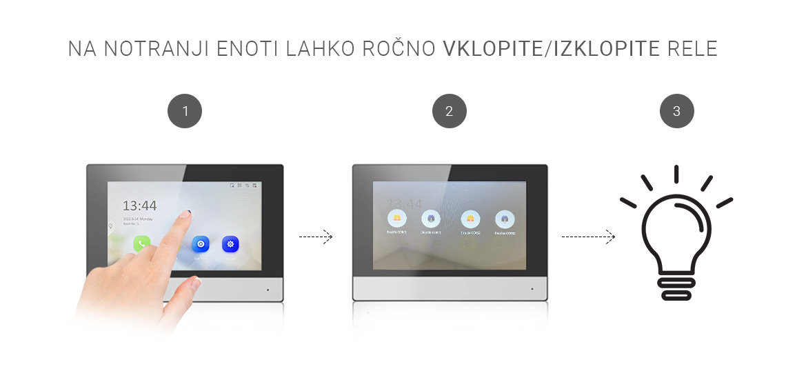 - Tekoča regulacija parametrov monitorja: svetlost slike, glasnost zvonca in pogovora,