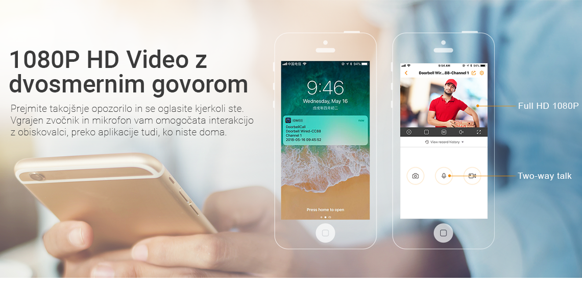 - Avtomatsko izvajanje in shranjevanje slik v primeru pritiska na gumb zvonca,