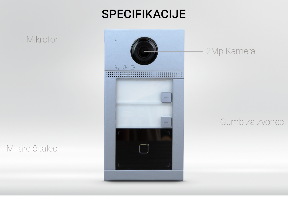 - Notranji bralnik kartic: Bralec Mifare kartic 13,56 MHz