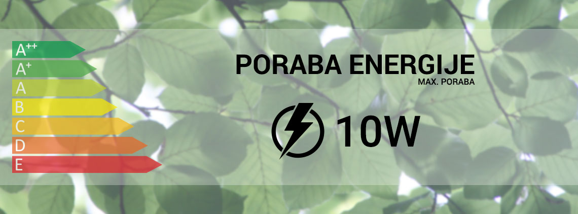 - Poraba energije: < 10 W