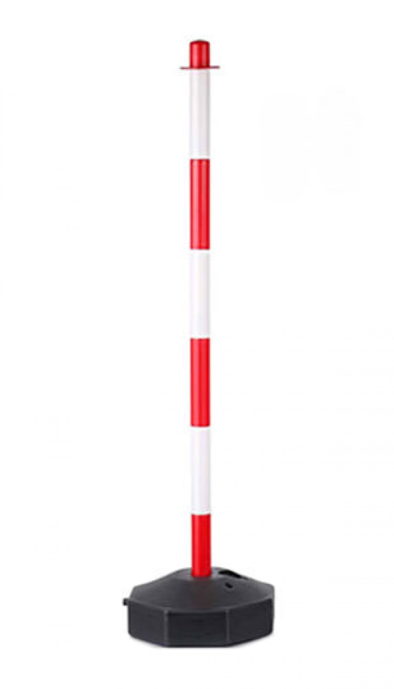 • Stebriček signalni, za PVC VERIGO namenjen označevanju, ograjevanju... Rdečo bele barve. Spodnji nosilec je votel, da se ga za obtežitev napolne z vodo ali peskom