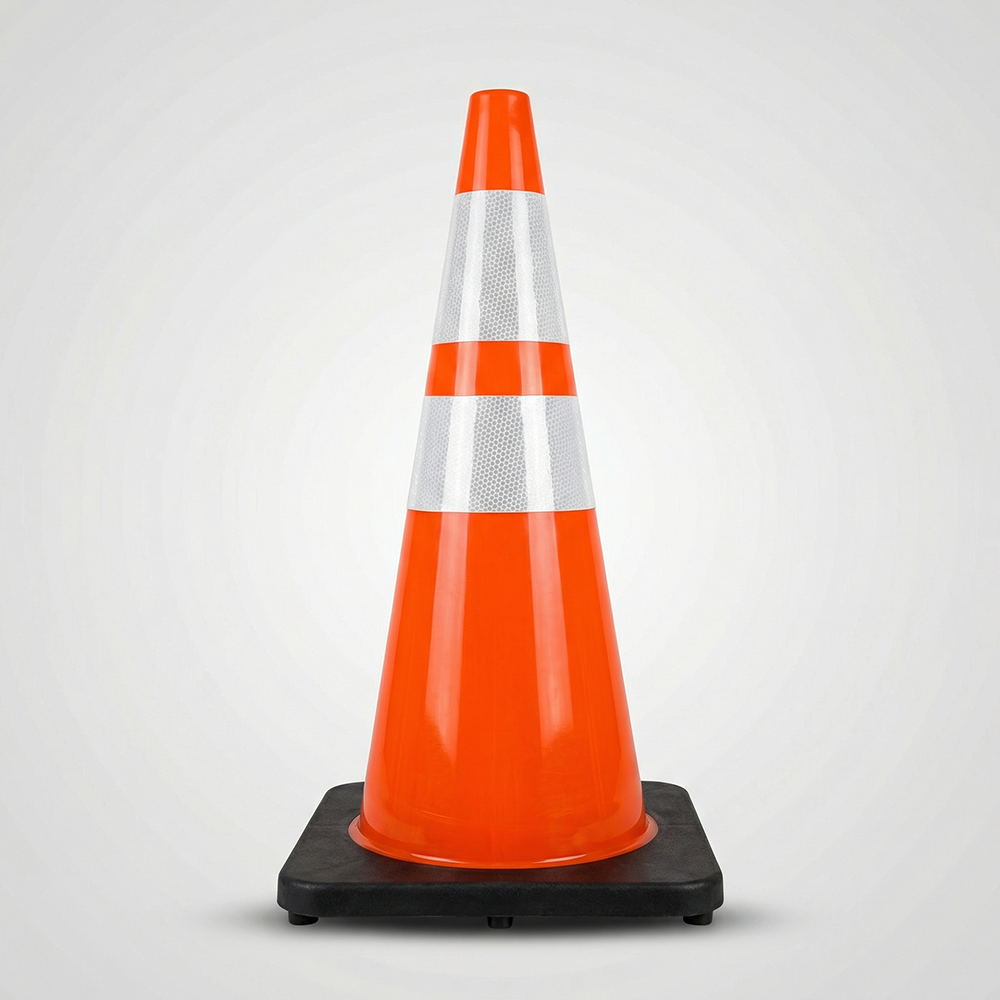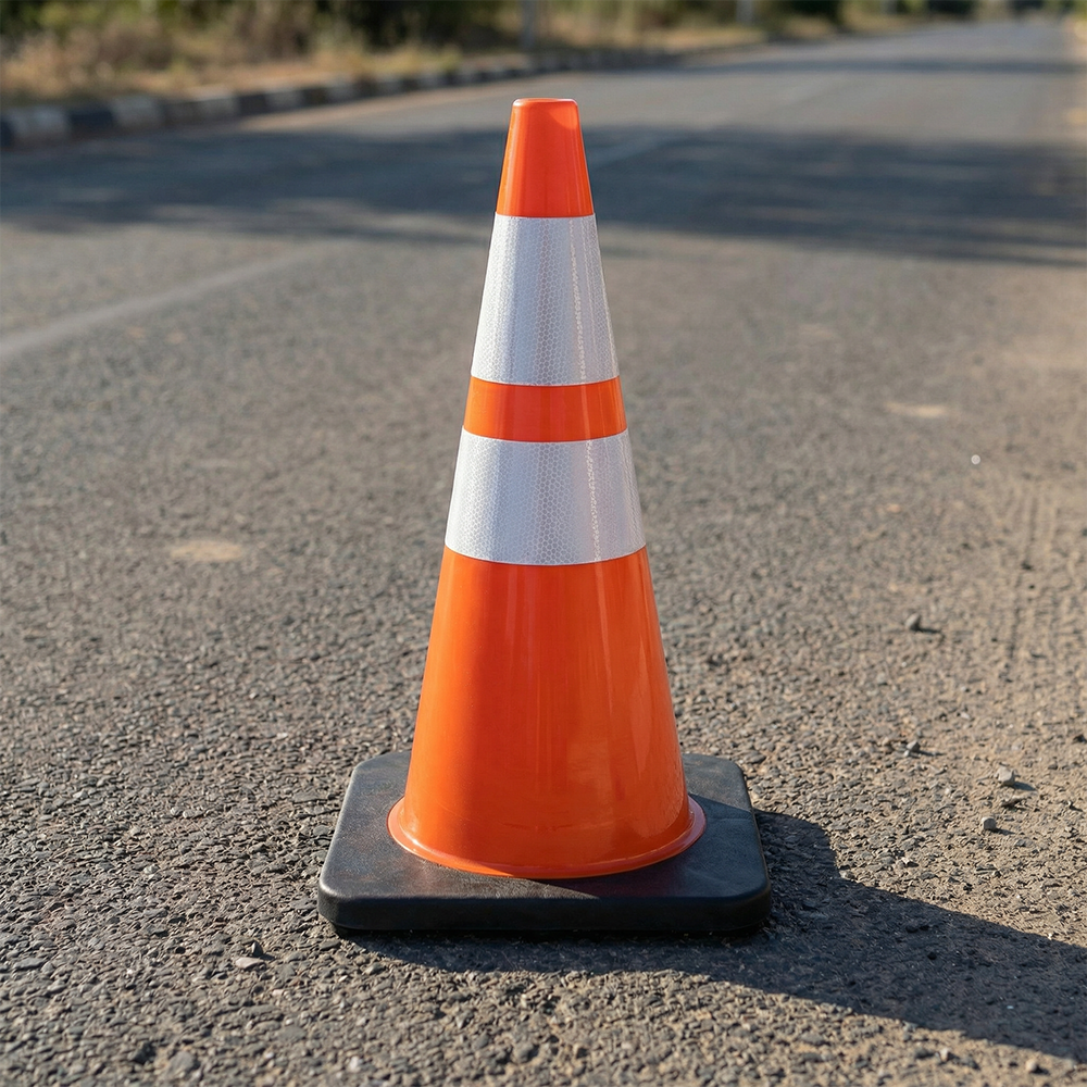Vzdržljiv prometni stožec iz kakovostnega PVC materiala z visoko odsevnimi trakovi za odlično vidnost podnevi in ponoči. Primeren za uporabo na cestah, gradbiščih, parkiriščih, v šolah ter za označevanje nevarnih območij.