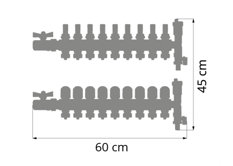 Sestavljen medeninast razdelilec za talno ogrevanje: 9 VEJ