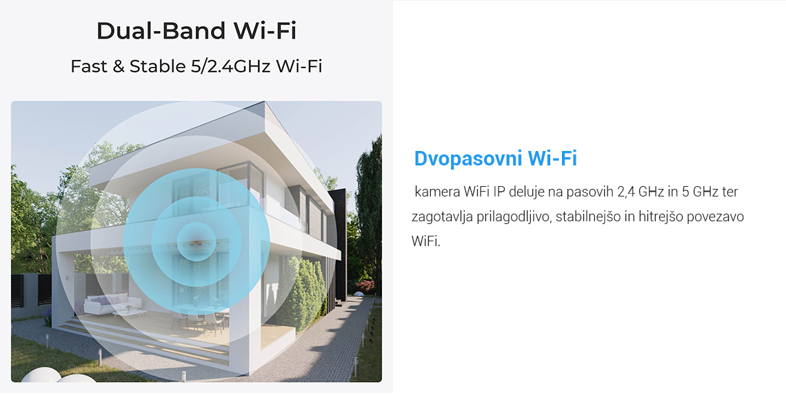 • 2.4 GHz/5 GHz dvopasovni WiFi