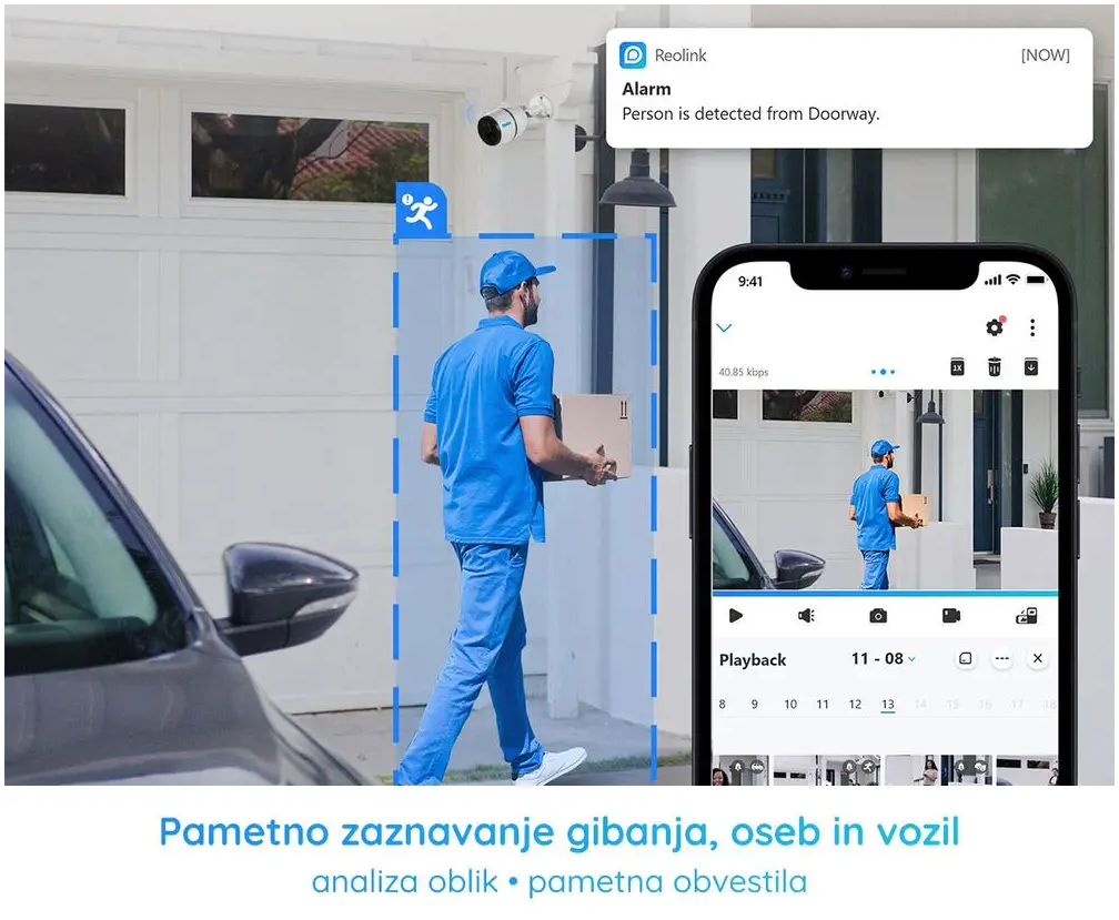 Pametni alarm: Da, ob zaznavanju gibanja / oseb / vozil