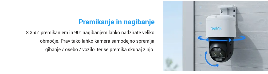Območje vrtenja in nagiba: Vodoravno: 355°, navpično: 0° ~ 90°