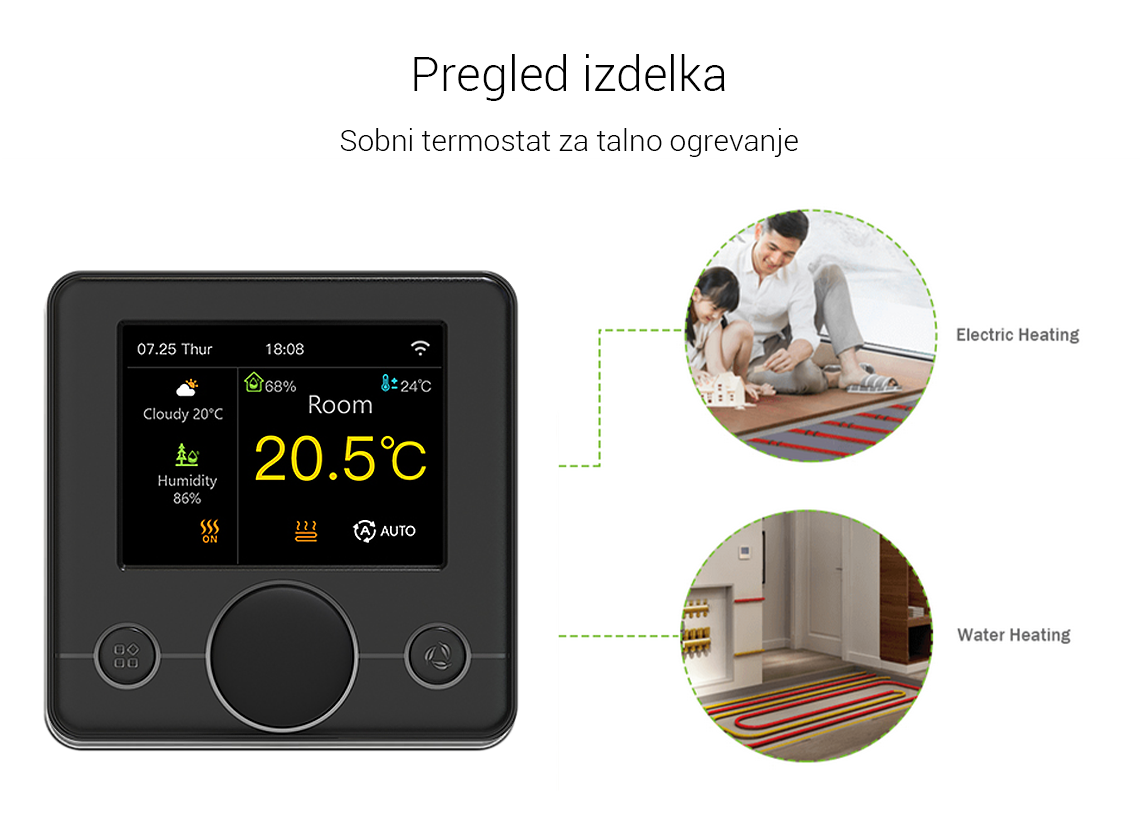 DIGITALNI TERMOSTAT Z BARVNIM LCD ZASLONOM / TEDENSKI ČASOVNIK / POVEZAVA Z Wi-Fi