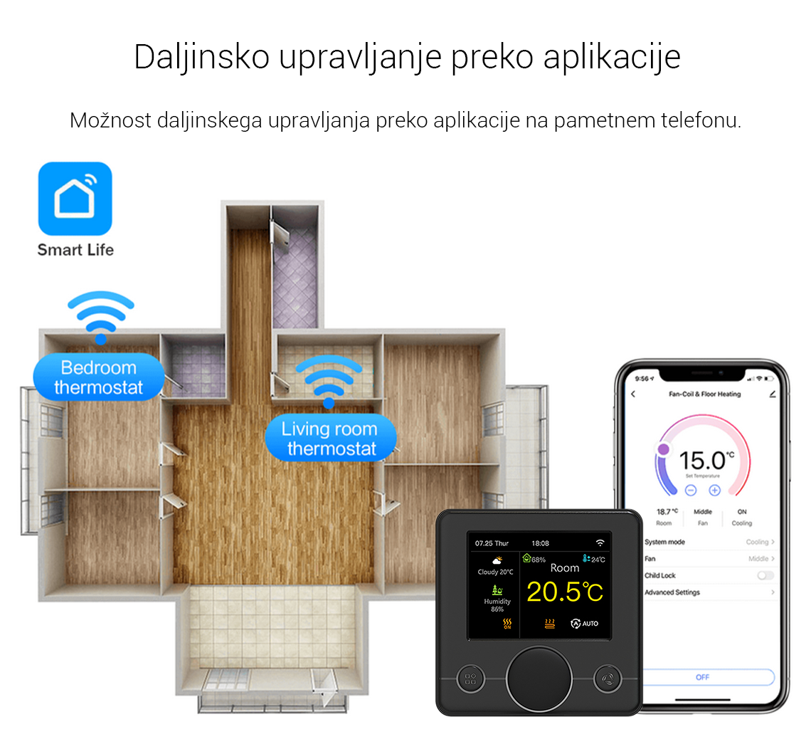 - Možnost upravljanja preko aplikacije na vašem pametnem telefonu