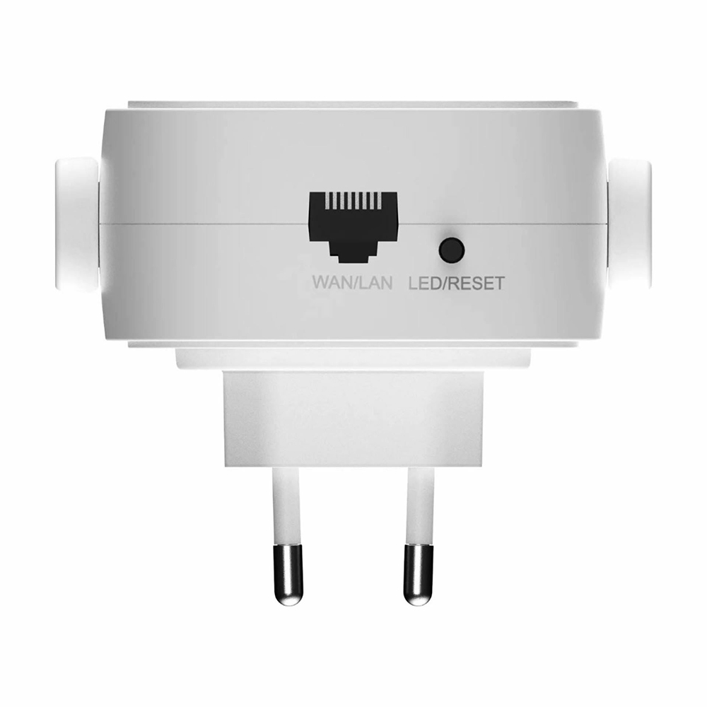 Ruijie brezžična dostopna točka RG-EW300R repeater omogoča preprosto podaljšanje brezžične povezave tako v domačem, kot tudi v delovnem okolju. Namestitev je nadvse preprosta, saj se poveže z obstoječo Wi-Fi omrežno povezavo preko WPS tipke, brez potrebe po dodatnih gonilnikih ali programski opremi. Dostopna točka je elegantno opremljena z dvema 4dBi antenama ter deluje na frekvenci 2.4 GHz, kar zagotavlja stabilno in zanesljivo povezavo za vse naprave v vašem okolju.