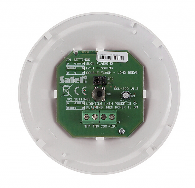 SOW-300-R je optična signalna naprava, zasnovana za notranjo uporabo. Ponuja štiri vrste signalizacije s pomočjo super svetlečih diod, med katerimi lahko izbirate (enakomerna svetloba, hitro utripanje, počasno utripanje in dve bliskavici, ki ji sledi 1-sekundna pavza). Okroglo ohišje signalne naprave SOW-300 R je zasnovano za pritrditev na steno ali strop. Naprava ima zaščito pred posegi.