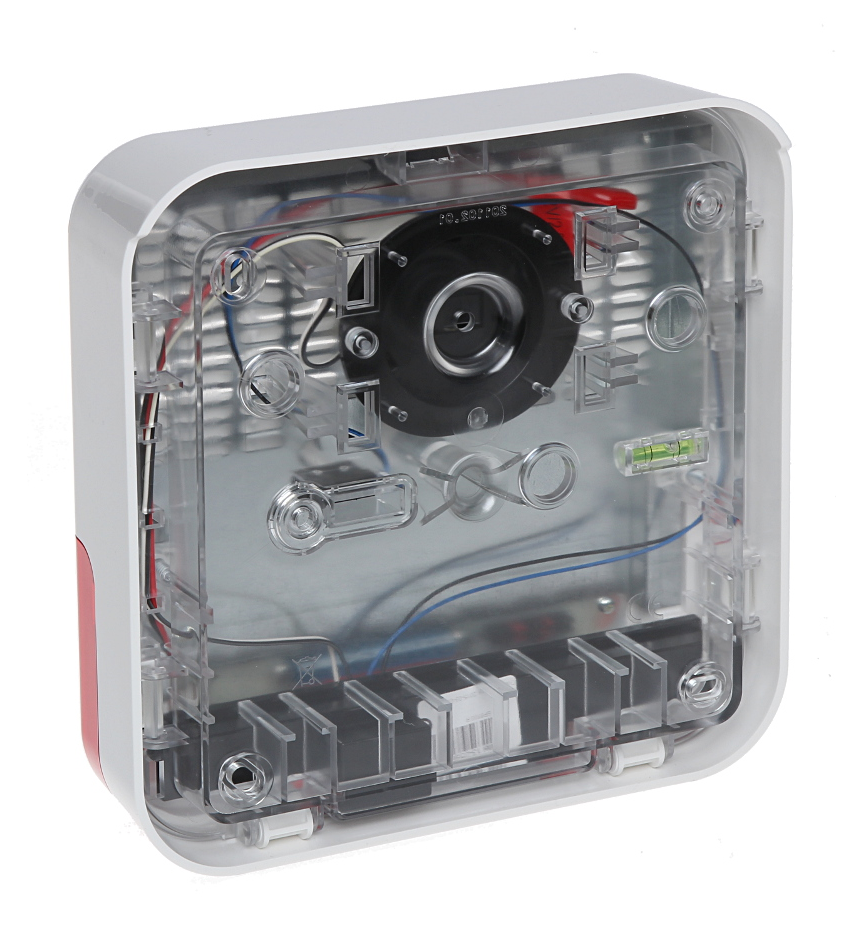 SP-6500-R je optično-zvočna sirena, zasnovana za zunanjo namestitev, opremljena z zelo svetlimi LED diodami in piezoelektričnim pretvornikom. Ohišje sirene je izdelano iz polikarbonata, kar zagotavlja visoko mehansko trdnost in estetski videz naprave, ki s časom ostane nespremenjena. Preprosta, a privlačna oblika ohišja je idealna tudi za sodobno fasado. Naprava je zaščitena pred posegi pred odpiranjem ali odtrganjem od stene.