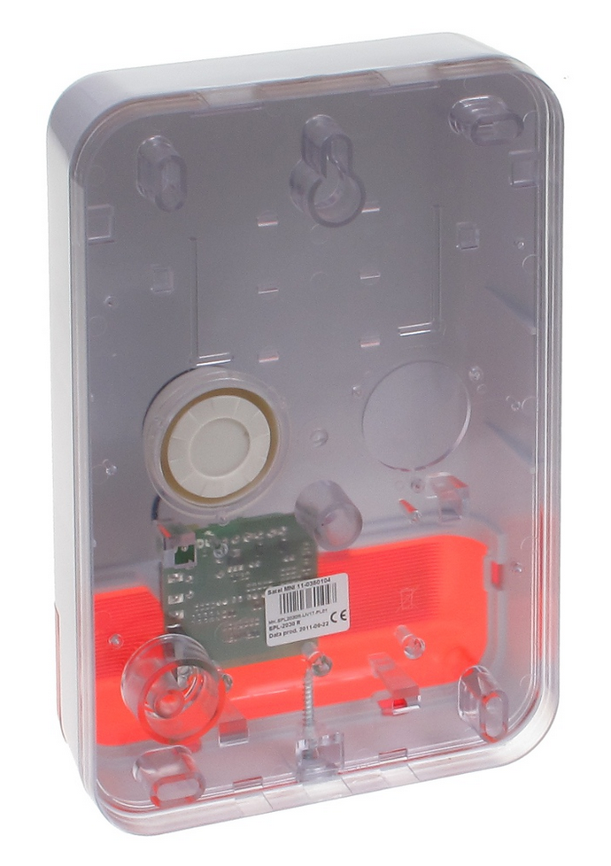 SPL-2030-R je optično-zvočna sirena, zasnovana za zunanjo namestitev, opremljena z zelo svetlimi LED diodami in piezoelektričnim pretvornikom. Izbirate lahko med tremi 120 dB toni. Ohišje sirene je izdelano iz polikarbonata, kar zagotavlja visoko mehansko trdnost in estetski videz naprave, ki s časom ostane nespremenjena. Preprosta, a privlačna oblika ohišja je idealna tudi za sodobno fasado. Naprava je zaščitena pred posegi pred odpiranjem ali odtrganjem od stene. Elektronska vezja so primerno vremensko zaščitena, zato so odporna tudi na vplive težkih okoljskih razmer.