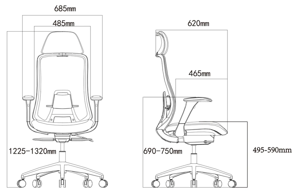 za glavo, izbočena in nastavljiva ledvena opora in 4D nastavljiva naslona za roke.