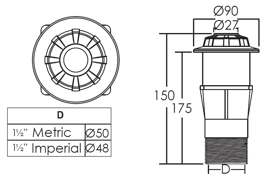 Skoznik AQ-2828 za betonske bazene izdelan iz ABS plastike. Uporablja se za izvedbo povratnih šob. Pretok (L/min): 69