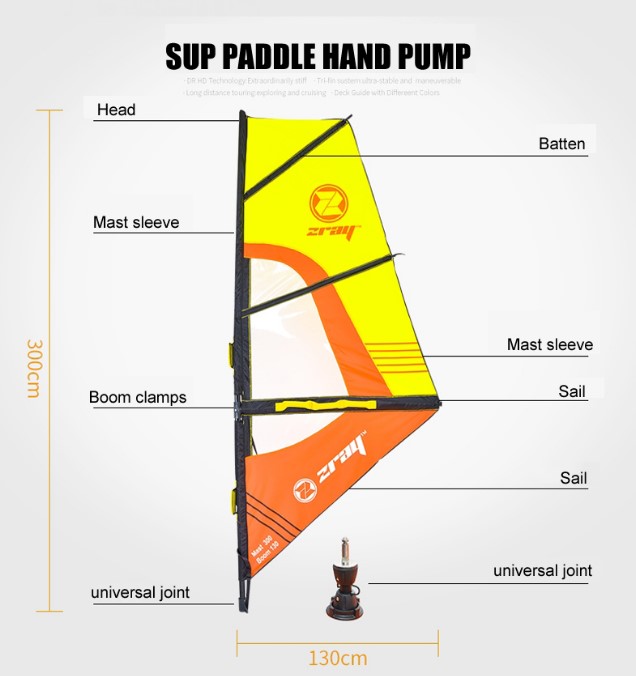 pa se obnese pri učenju jadranja na deski. Vsebuje univerzalen navoj, zato