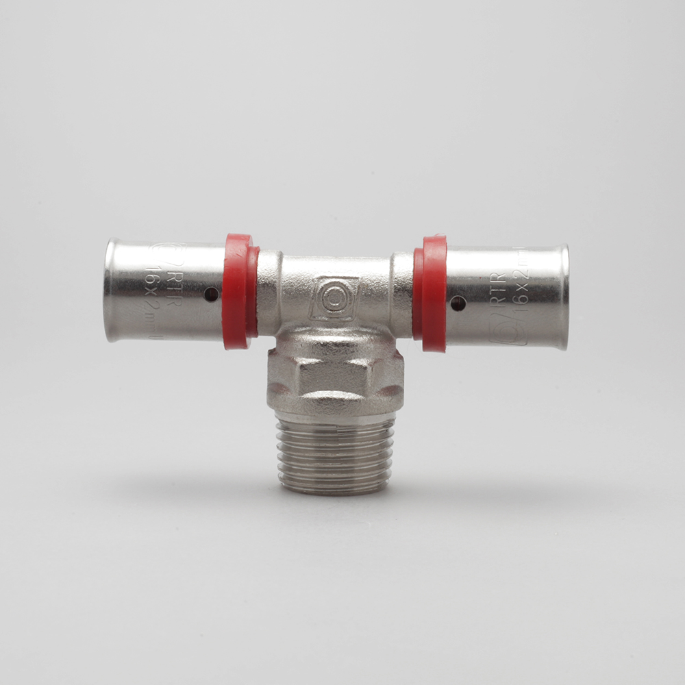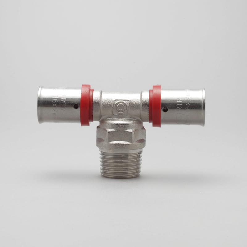 - T-kos z zunanjim navojem za cevi PE-Xb/Al/PE-Xb