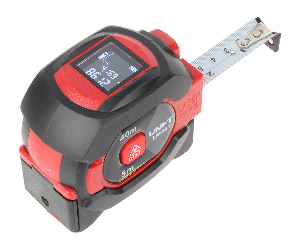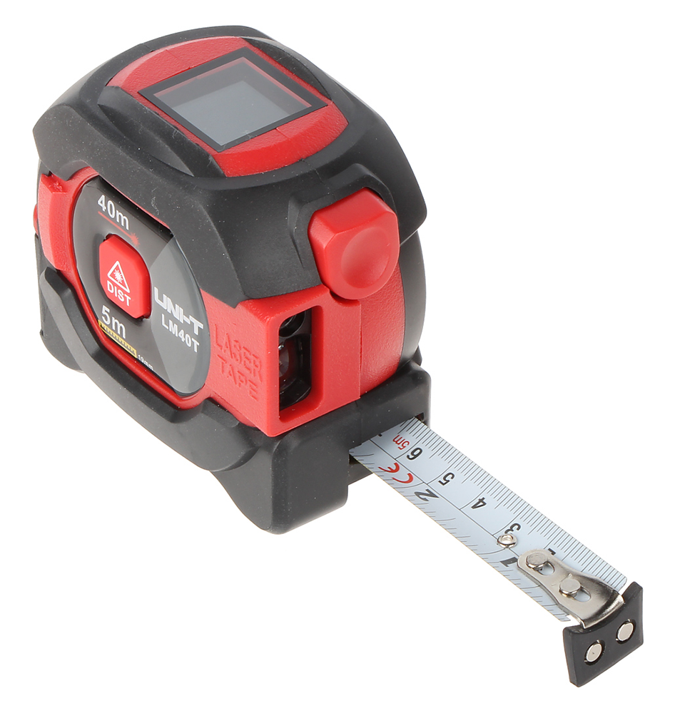 Naprava LM40T je laserski merilnik razdalje z dosegom do 40 m z metrom dolžine 5 m.