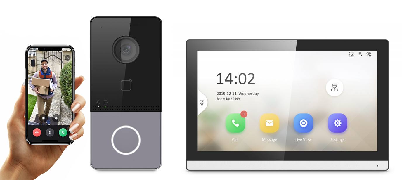 2MP barvna kamera / 7 palčni barvni TFT zaslon na dotik / UTP povezava / reža za TF kartico / odklepanje vrat / bralec mifare kartic / možnost alarma
