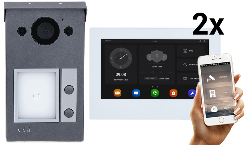 Štiristanovanjska zunanja enota Wi-Fi + 2MP kamera + 7 palčni barvni zaslon na dotik + Android 8.1 + UTP povezava + odklepanje s kartico, notranjo enoto, preko aplikacije + povezava s kamero + možnost alarma
