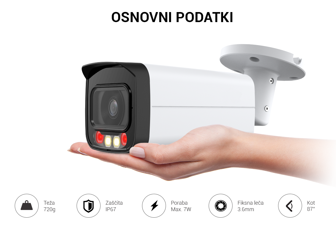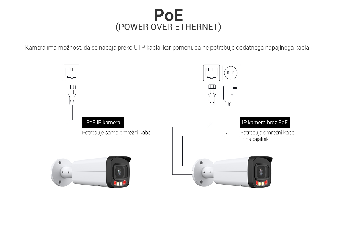 Disk za shranjevanje posnetkov in PoE stikalo za povezavo ter napajanje kamer nista vključena in se dokupita po potrebi.