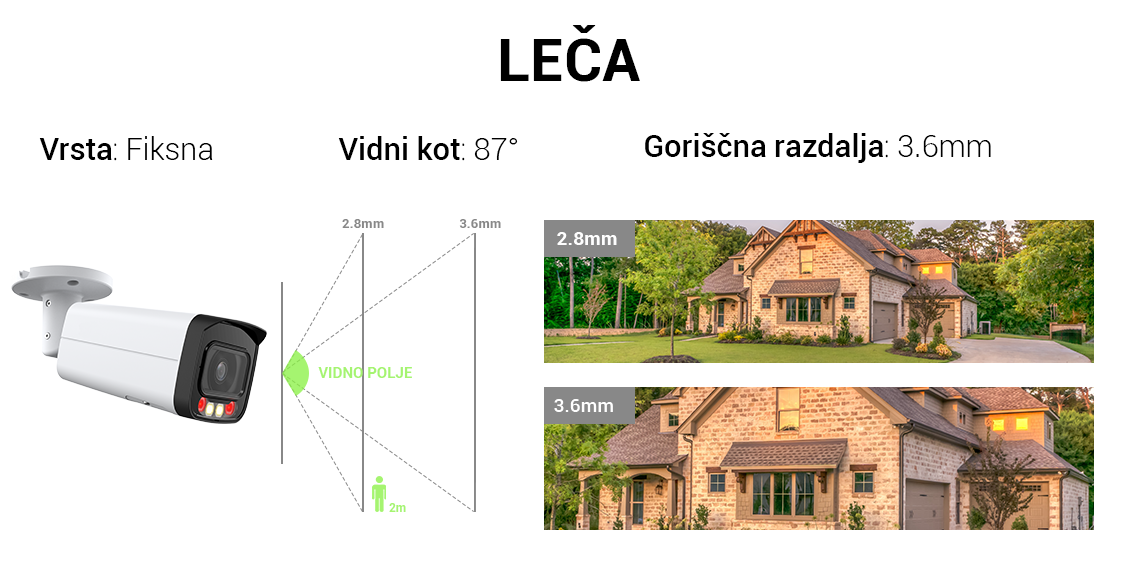 Min. osvetlitev: 0.008 lux@F1.6 (barvno, 30 IRE); 0,0008 luksa pri F1.,6 (č/b, 30 IRE); 0 luksov (osvetljevalec vklopljen)