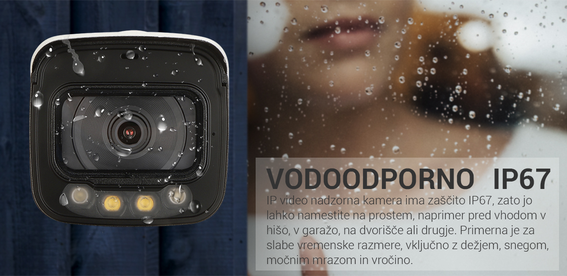 Vgrajena topla luč in IR LED, maks. domet osvetlitve je 60 m, maks. domet tople svetlobe je 50 m.
