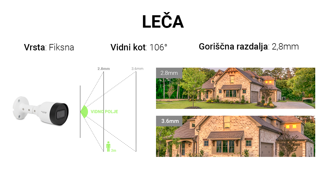 Disk za shranjevanje posnetkov in PoE stikalo za povezavo ter napajanje kamer nista vključena in se dokupita po potrebi.