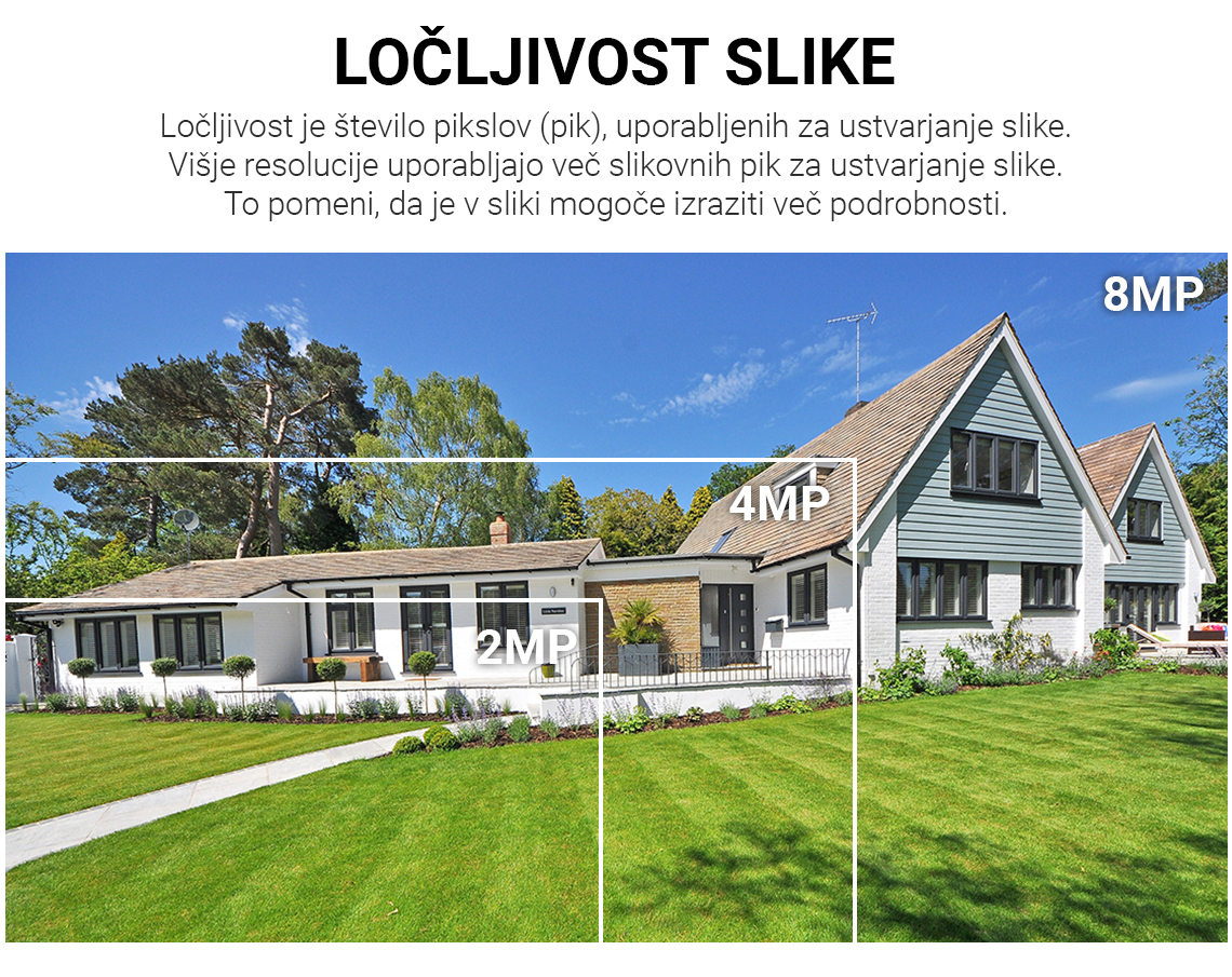 Ločljivost: 12 MP; 8 MP; 5MP; 4MP; 3MP; 2 MP; 720p; D1