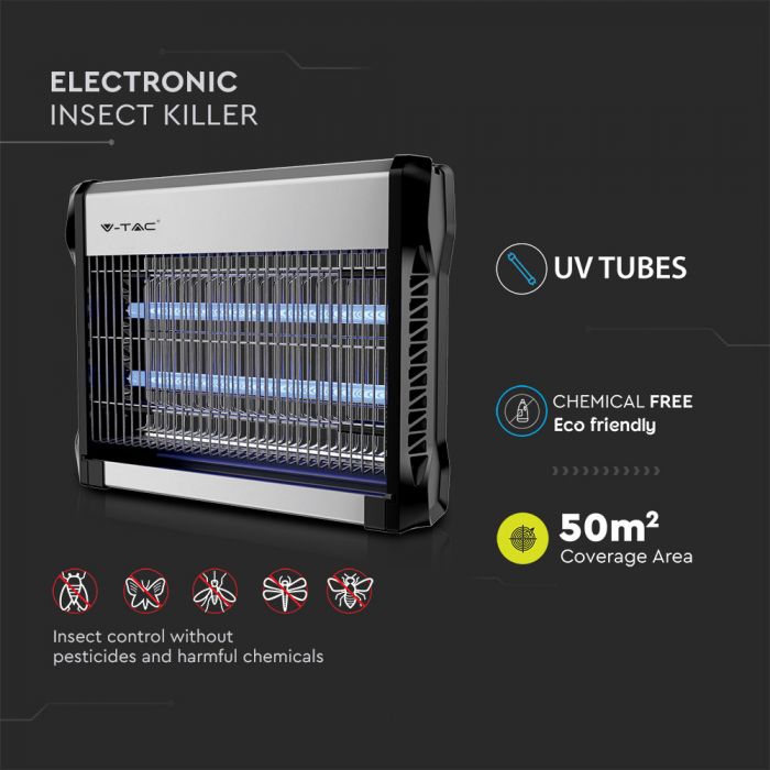Okolju prijazna možnost za odstranjevanje insektov, zvabi insekte v mrežo za ubijanje in tako ustvari udobno in varno območje okoli vas. Zatiranje insektov brez pesticidov in škodljivih kemikalij. Vzdržljivo aluminijasto ohišje brez korozije. Enostavno čiščenje. Žična veriga za obešanje ter možnost postavitve na ravno površino. Kot nalašč za dom, pisarno, garažo, kuhinje, šole, bolnišnice in poslovne prostore.