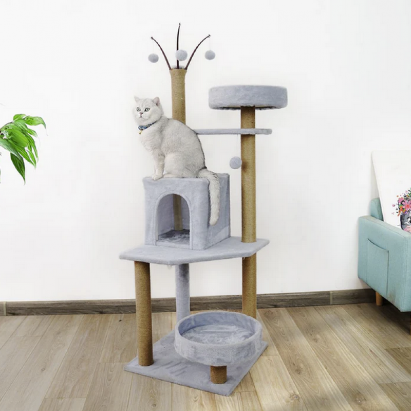 Interaktivno območje za igro: Na drevesu so viseče plišaste igrače, ki spodbujajo igrivost in interaktivno zabavo ter vašo mačko zabavajo več ur.