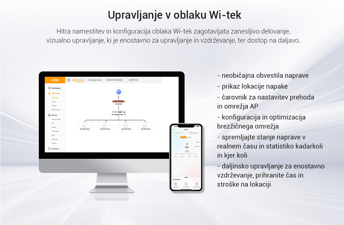 Upravljanje: hitro skeniranje naprav z orodji za odkrivanje, spletno upravljanje lokalno, podpora oddaljenemu upravljanju s platformami in aplikacijami v oblaku, podpora upravljanju AC