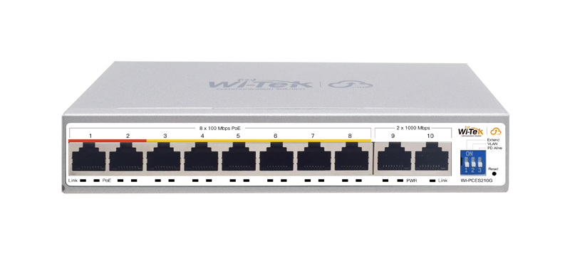 DIP stikalo: 1. Razširitev - razdalja prenosa vrat PoE je lahko do 250 m s 10 Mbps; 2. VLAN - Omogočite izolacijo vrat, vsaka vrata PoE lahko samo pošiljajo podatke v vrata navzgornje povezave; 3. PD Alive - vsa vrata PoE omogočajo funkcijo PoE Alive, ki lahko zazna in znova zažene naprave, ki so združljive s PoE.