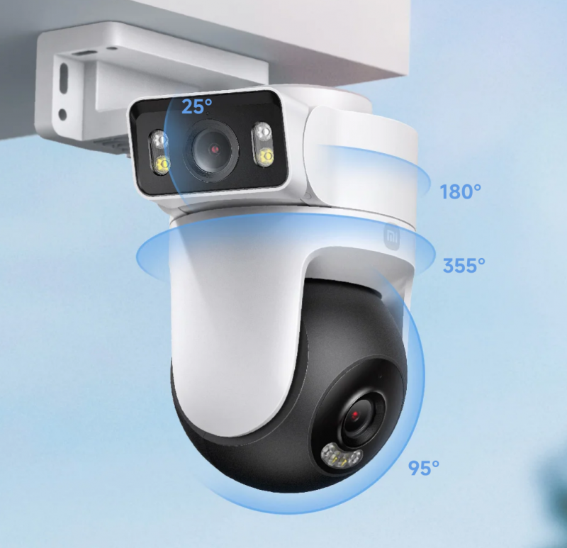 Dvojna kamera za celovit nadzor. Ena naprava z več koti gledanja za večjo varnost in zanesljivost. Združite fiksne + PTZ kamere. Fiksna kamera spremlja fiksne kote gledanja. Premično kamero PTZ je mogoče prilagodljivo upravljati prek aplikacije Xiaomi Home za pokrivanje različnih kotov.