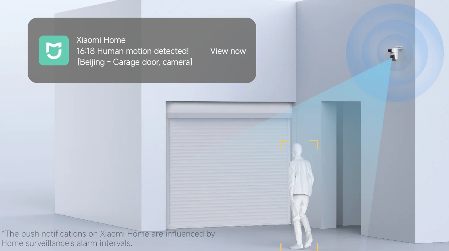 Obe kameri hkrati zaznavata in spremljata. Ko se v nadzorovanem območju pojavijo ljudje ali vozila, bo aplikacija Xiaomi Home nemudoma poslala alarm na vaš pametni telefon in posnela video, da zagotovi zaščito vaše lastnine ves čas.